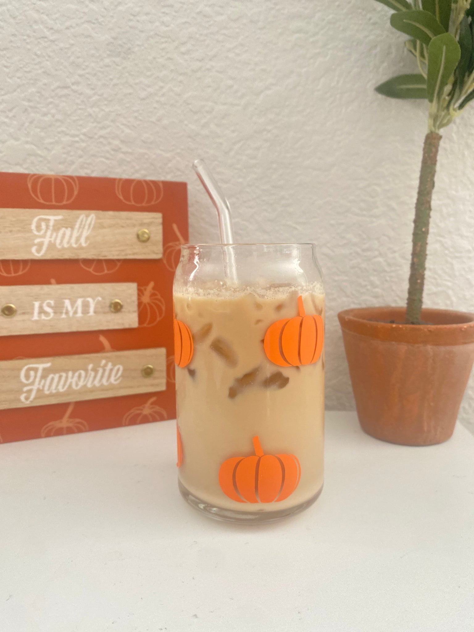Orange Pumpkins 16 oz glass cup